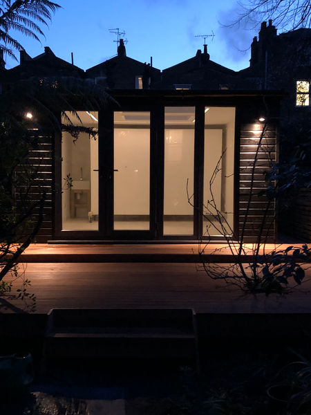 Designing a garden studio for an artist presented itself with some unique considerations. The client wanted a garden studio with surrounding decking. If you keep it under a certain size and its a wooden structure you don’t need planning permission, but there other regulations you have to follow. They also needed a space with lots of light for painting and efficient heating to prevent dampness. Creative solutions, like a floating wall with hidden storage, maximised the workspace while maintaining a clutter-free environment. Witnessing the client's renewed passion for painting was so rewarding.